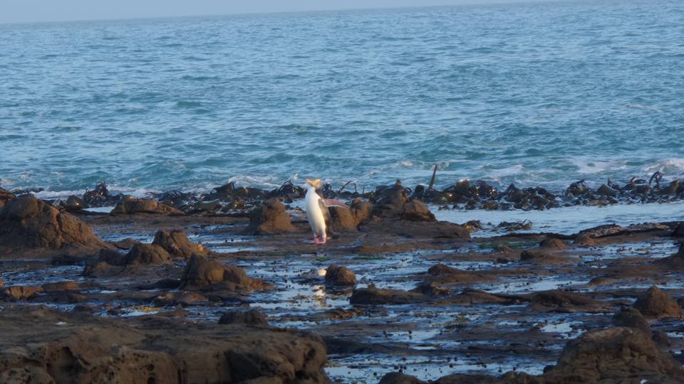 Yellow eyed penguin! They are one of the only breeds of penguin to choose to live alone, so although they came to shore in a group of 3 they soon dispersed to their nests hidden in the cliffs.